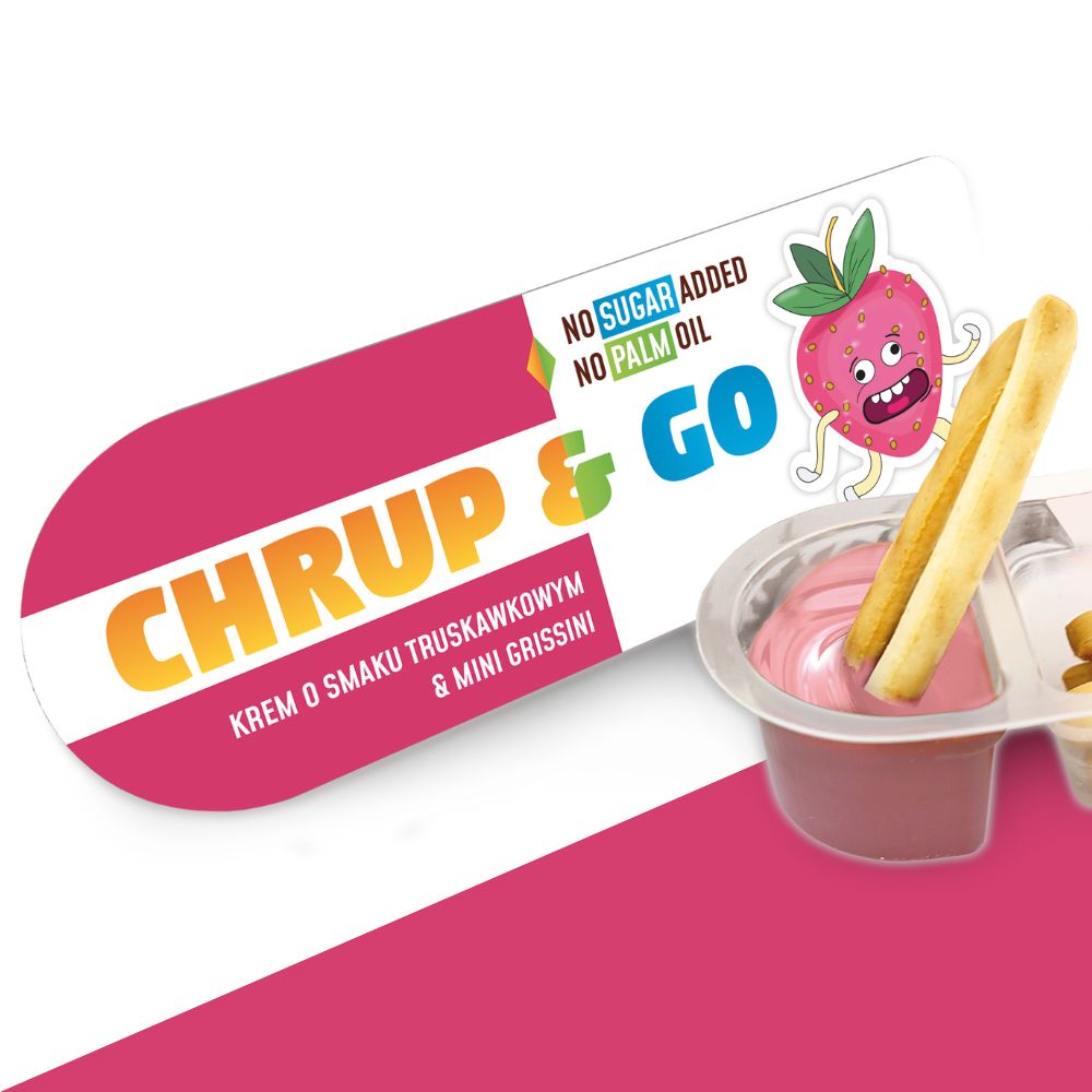 Chrup&Go z kremem o smaku truskawkowym to perfekcyjne połączenie chrupiących paluszków grissini i intensywnego smaku świeżych truskawek. Ta przekąska zapewnia niezapomniane doznania smakowe, które rozpieszczą Twoje kubki smakowe podczas podróży.